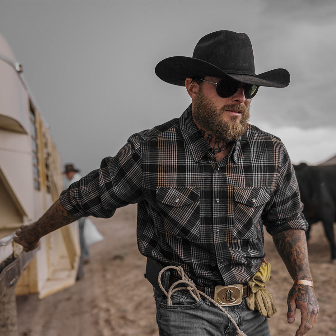 Get a timeless look with our classic long-sleeve flannel built for your plans for the day. It features an exclusive plaid design with classic details: long sleeves, front patch pockets, buttoned cuffs, and a rounded hem at the bottom.
