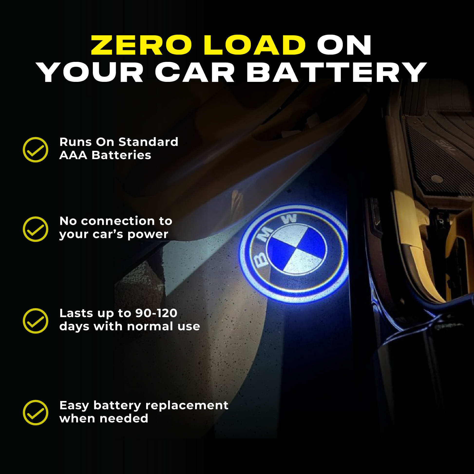 CAR WITH THE WARMEST WELCOME: The hottest car accessory in the market. Door welcome lights project the logo of the car as soon as the door opens. A pleasing and welcoming entryway reflects your identity as a car owner. Let your car greet you!?