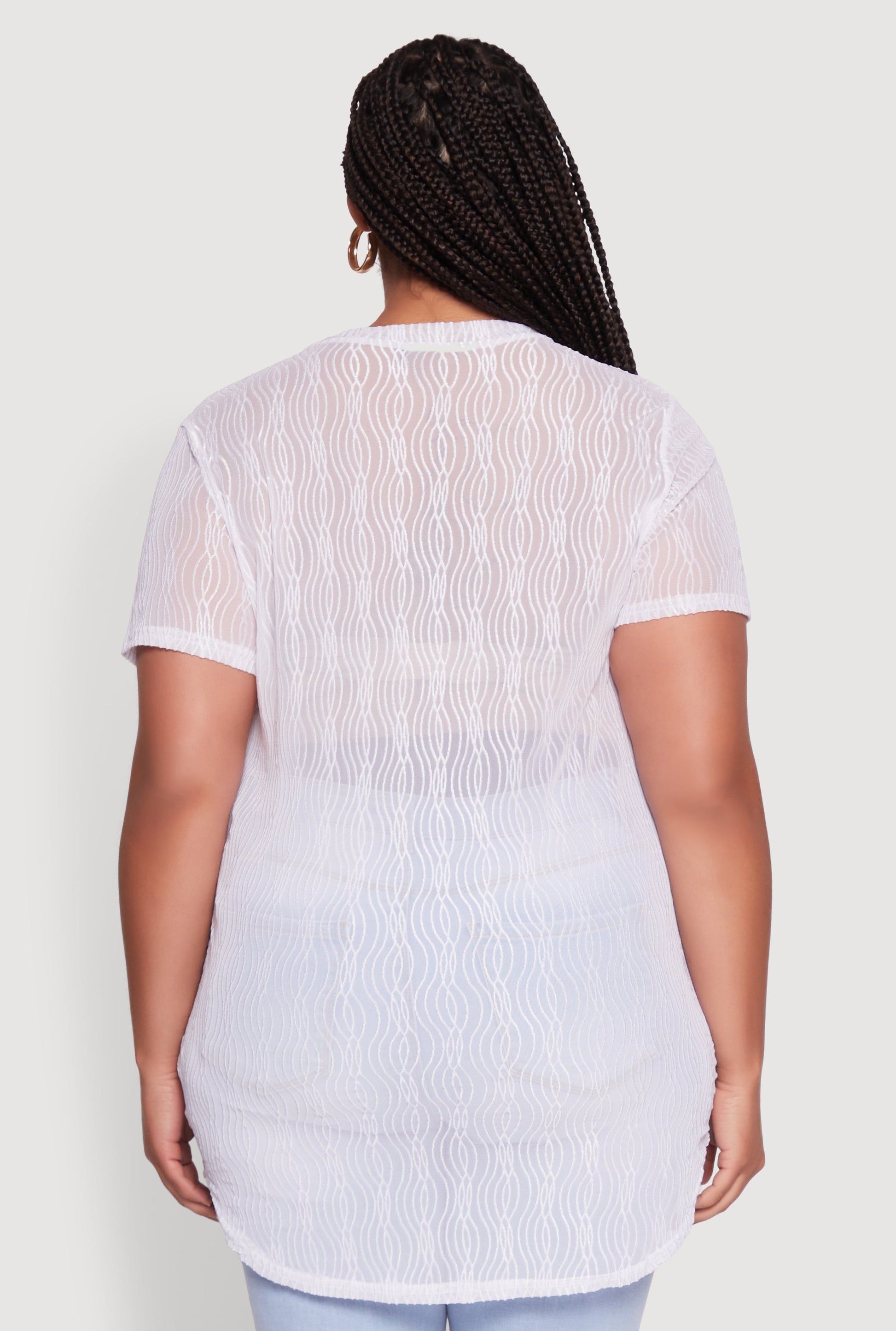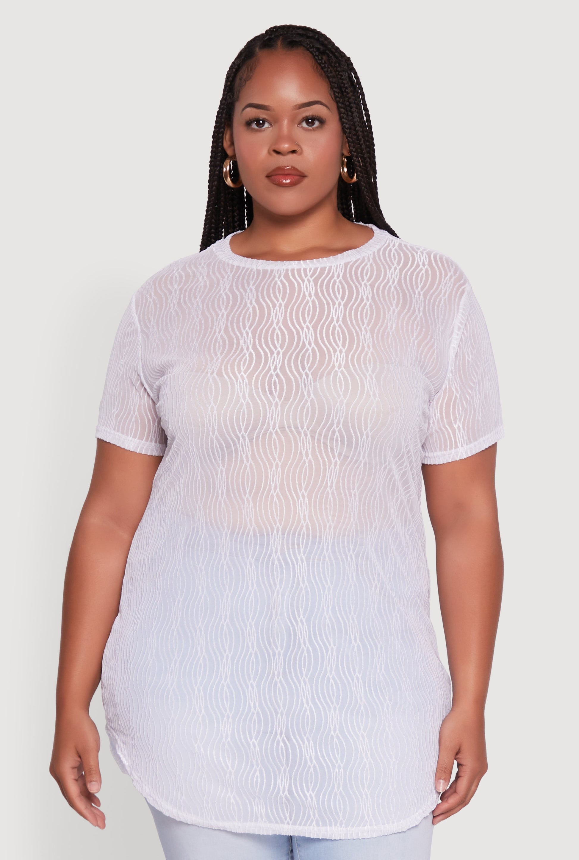 Step up your casual game with this Plus Size Sheer Textured Knit Tunic Top. Designed for effortless style and comfort, this classic fit tunic features a breathable mesh fabric with a unique textured knit that adds a playful twist to your everyday look. The sheer design keeps it flirty and fresh, perfect for layering or wearing solo with your fave bralette. Whether you're heading to a festival or just chilling with friends, this tunic is your go-to for versatile vibes and easy confidence.